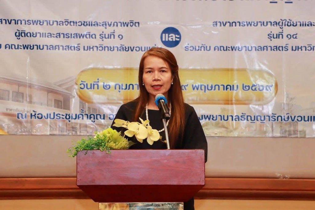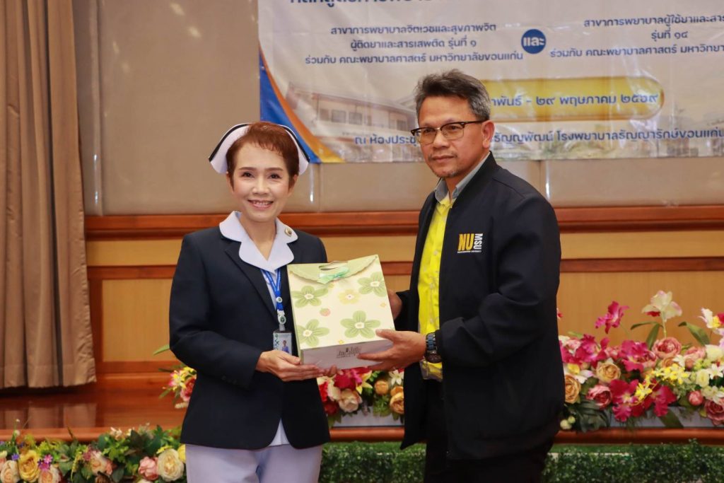 รองศาสตราจารย์ ดร.จารุวรรณ ก้าวหน้าไกล คณบดีคณะพยาบาลศาสตร์ มหาวิทยาลัยมหาสารคาม ร่วมพิธีเปิดโครงการฝึกอบรม หลักสูตรการพยาบาลเฉพาะทาง สาขาการพยาบาลผู้ใช้ยาและสารเสพติด รุ่น 14 เปิดหลักสูตรที่เปิดร่วมกับโรงพยาบาลธัญญารักษ์ขอนแก่น เมื่อวันที่ 2 กุมภาพันธ์ 2569 ณ ห้องประชุมค้ำคูณ ชั้น 4 อาคารธัญญพัฒน์ โรงพยาบาลธัญญารักษ์ขอนแก่น