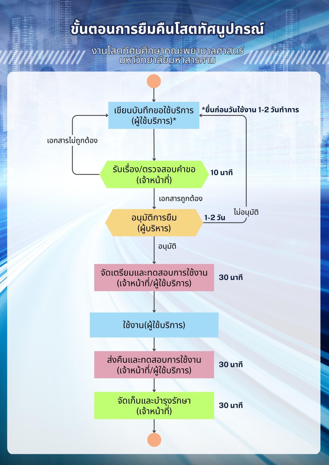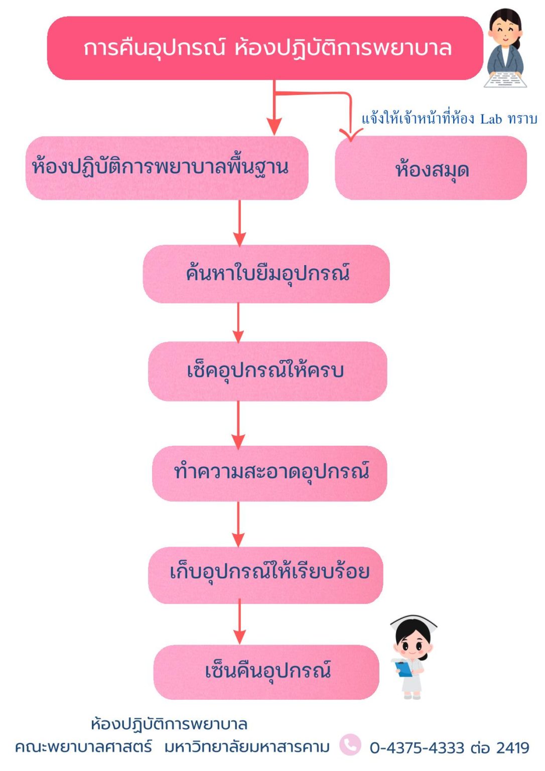 ขั้นตอนการให้บริการ ห้องปฏิบัติการพยาบาลพื้นฐาน – การยืมอุปกรณ์ – การคืนอุปกรณ์