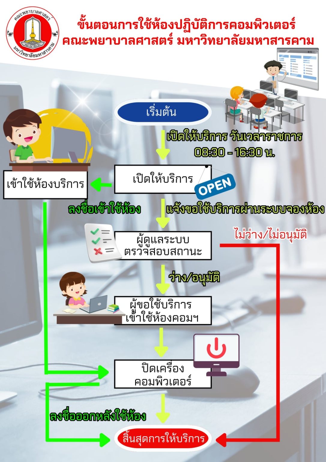ขั้นตอนการให้บริการ ห้องปฏิบัติการคอมพิวเตอร์